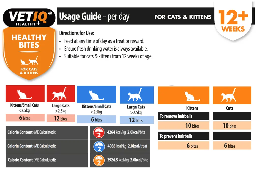 Healthy Bites Hairball Relief: Poultry Meal, Rye Flour, Canola Oil, Maize, Malt Extract, Milk Derivatives, Natural Flavour, Whey powder, Sodium Chloride, Inulin, Ascorbyl Palmitate, Rosemary Extract Oil, Vitamin E, Vitamin A, Vitamin D3.