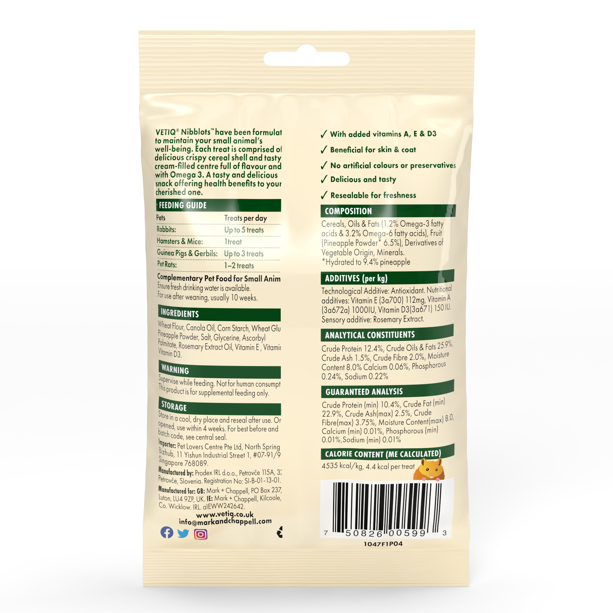 VETIQ® Nibblots™ have been formulated to maintain your small animal’s well-being. Each treat is comprised of a delicious crispy cereal shell and tasty cream-filled centre full of flavour and with Omega 3 and added Vitamins A, E & D. A tasty and delicious snack offering health benefits to your cherished one.