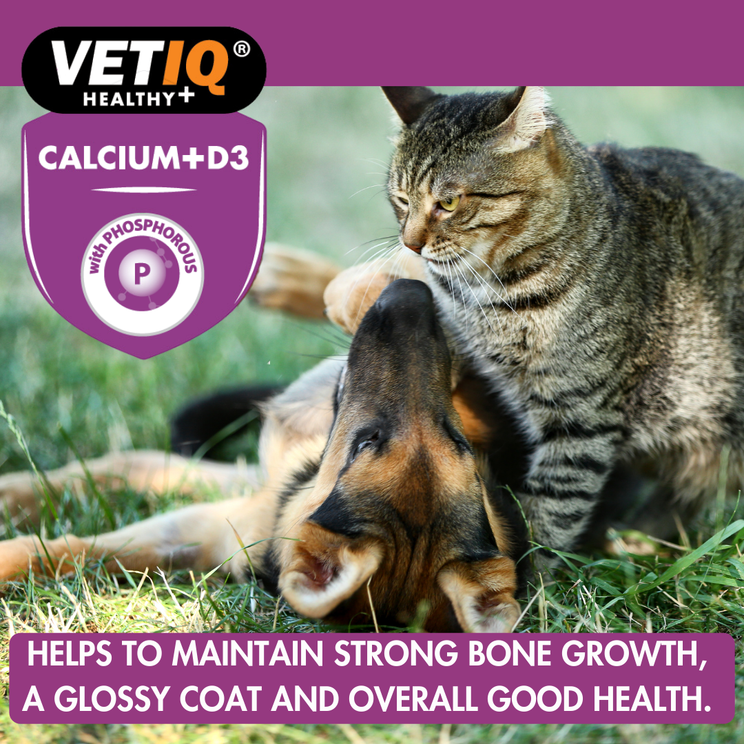 VETIQ® Calcium +D3 Tablets combine both calcium and phosphorus which is particularly beneficial for puppies, kittens and nursing mothers when calcium demand is high and there is a need to develop & maintain strong bone growth. It will also promote glossy coats.